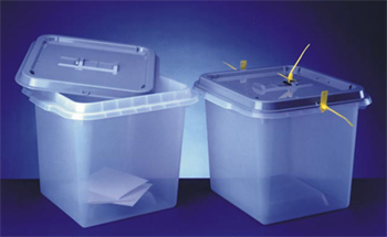 Die Wahlurnen W 90, W 70 und W 40 sind in stabiler Bauweise aus Kunststoff nach DIN gefertigt. Durch den verwendeten Kunststoff haben